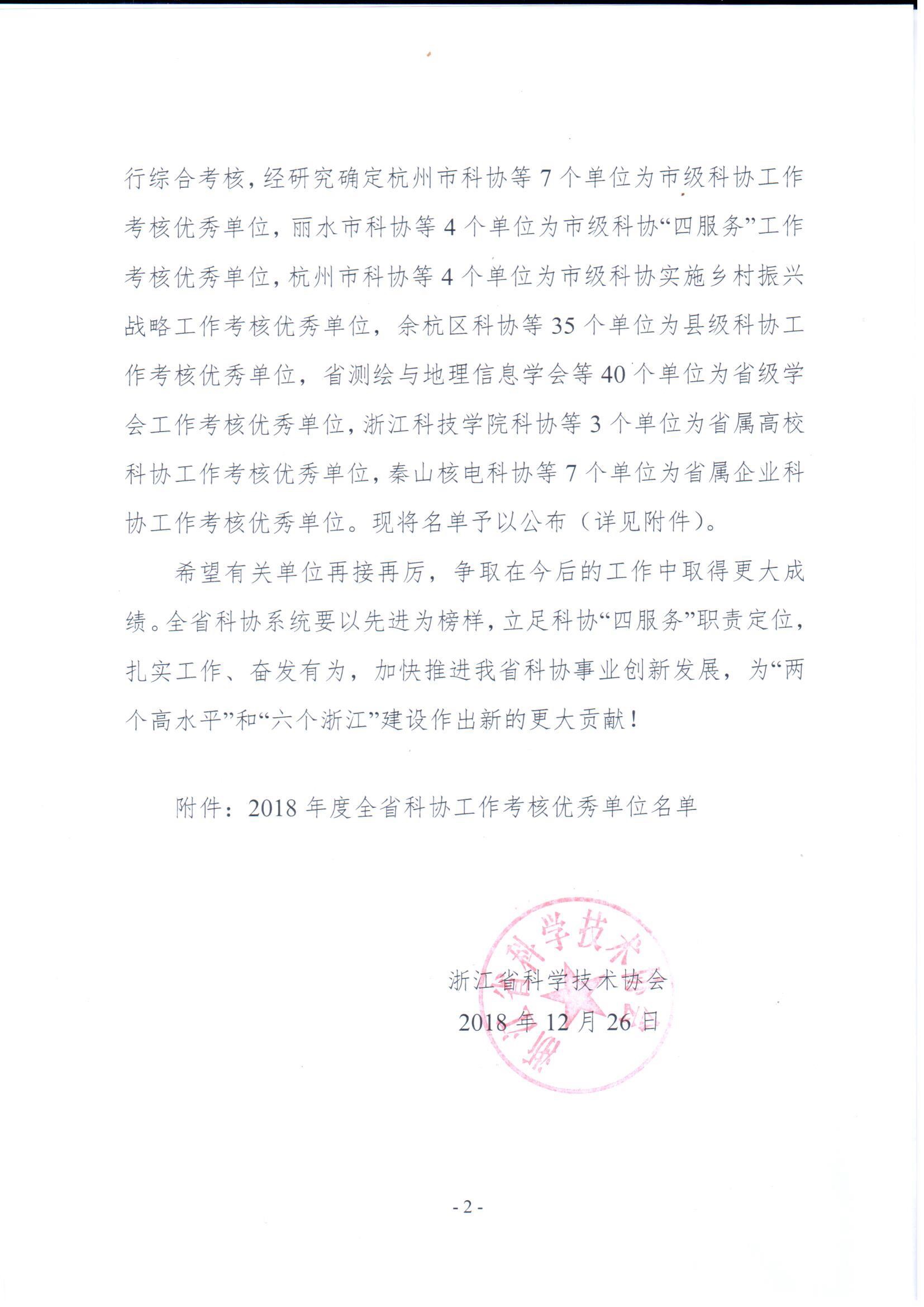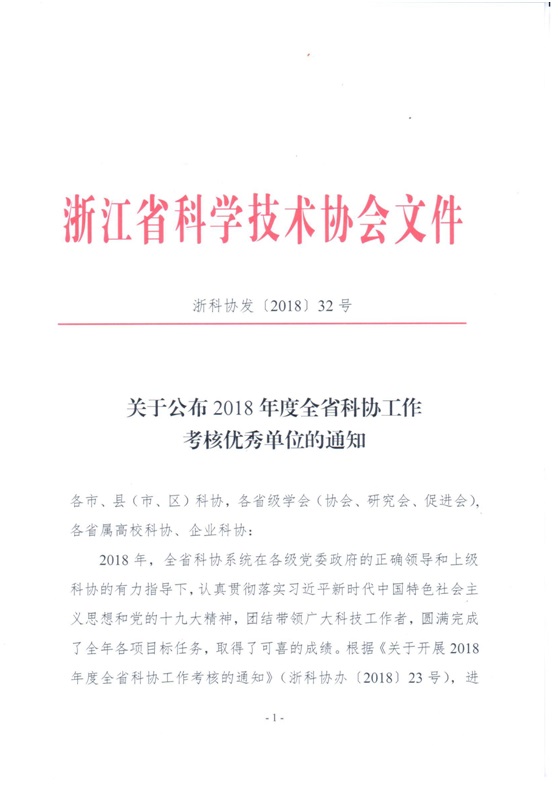 各位领导和会员,本学会被省科协评为2018年度省级学会工作考核优秀单位,在此对各位领导和广大会员的大力支持与配合表示衷心的感谢!新的一年,祝大家猪年大吉,工作顺利!